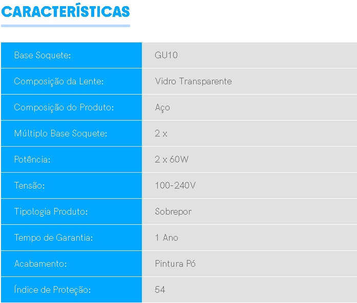 256285 – *ARANDELA LAHR ACO 2XGU10 450MM Branca 256286 – *ARANDELA LAHR ACO 2XGU10 650MM Branca outras opções de cores sob consulta