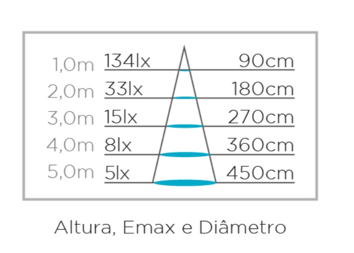 Ângulo de Abertura: 70° / 4° – facho aberto fechado