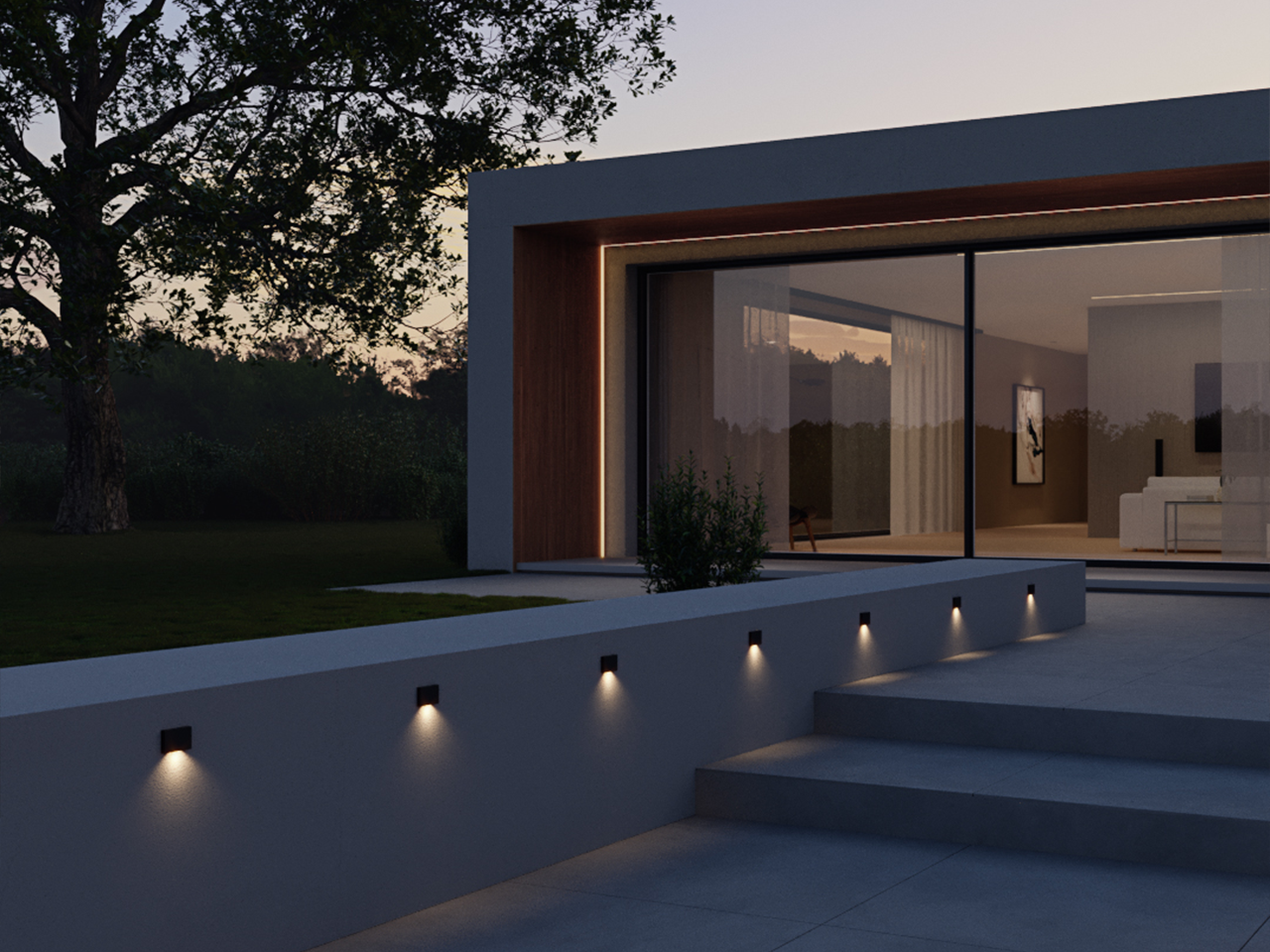 Iluminação de Orientação (Facho Direcionado): Projetado com facho de luz voltado para baixo, iluminando apenas o degrau e eliminando o ofuscamento direto nos olhos.