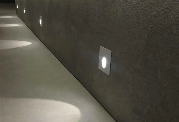 • Iluminação de Orientação (Facho Direcionado): Projetado com facho de luz voltado para baixo, iluminando apenas o degrau e eliminando o ofuscamento direto nos olhos.