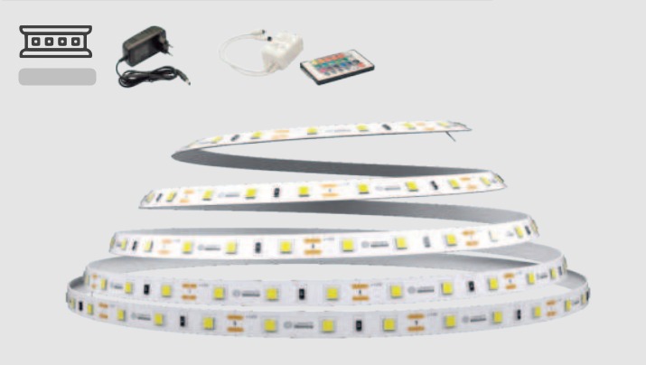256465 – FITA LED RGB 6W/M 12VC/FONTE/CONTR RL 5M ( produto completo, incluso 5 metros fita, 1 driver 12v e 1 controle infra)