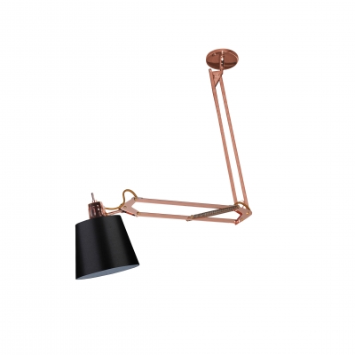 Data11 de março de 2018 Luminária articulada em metal – 1050987 Material: Aço opções de Cor: Cromado ou branco com cúpula branca e cobre com cúpula preta – Soquete: E27 Lampada: 1 x E27 Medidas: 62cm x 80cm (peça) | ø25cm x 15cm (cúpula)